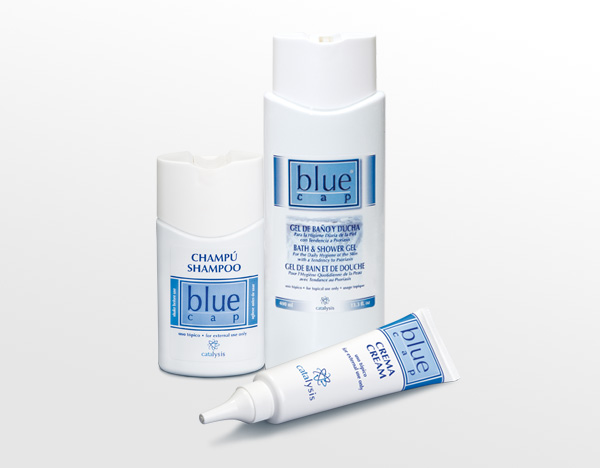 BLUE CAP® je určen pro dlouhodobou hygienu pokožky se sklonem k různým druhům psoriázy, seboroické dermatitidy a ekzémů. Svým účinkem eliminuje tvorbu kožních šupin na těle i na pokožce hlavy, zmírňuje svědění a zlepšuje vzhled pokožky.